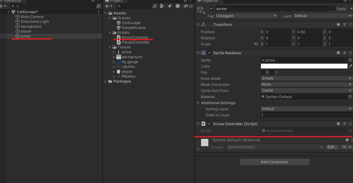화살을 제어할 스크립트 생성 (ArrowController) 및 컴포넌트 연결