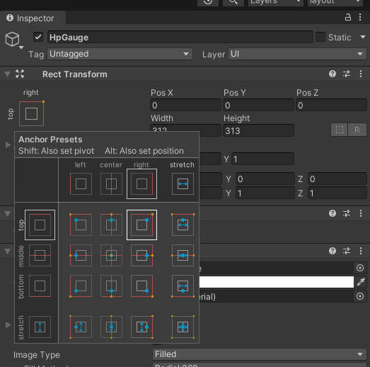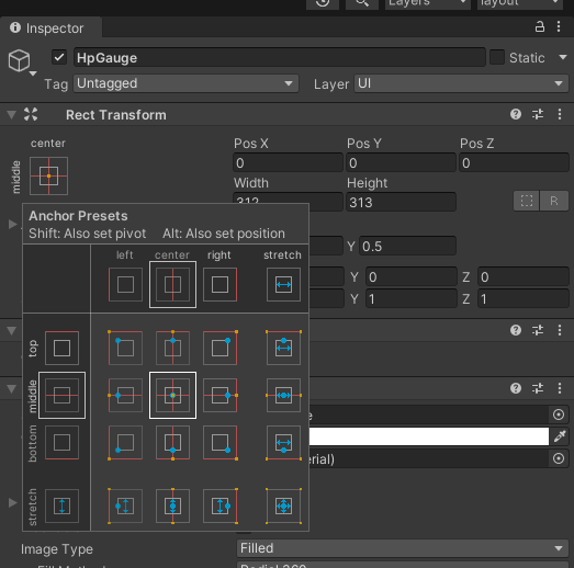- 하이어라키 > Canvas > HpGauge에 UI이미지 넣기(드래그 앤 드롭)