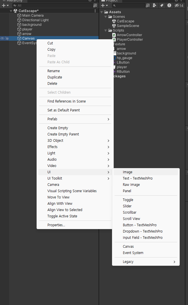 고양이의 체력(Hp)를 UI로 연동시키기_UI생성